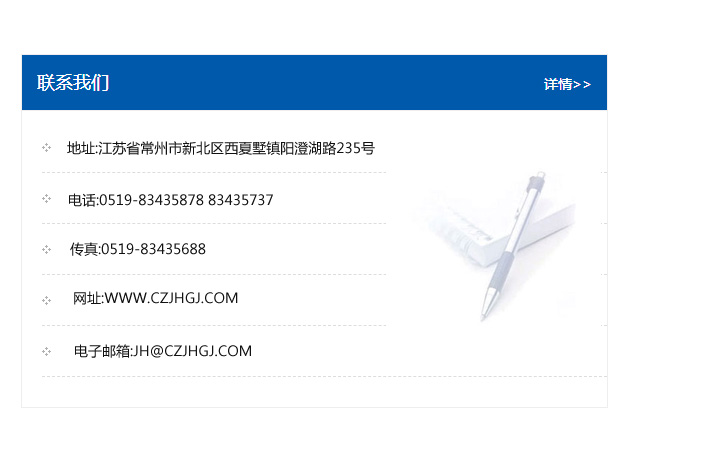 地址:常州市新北區友邦商務大廈1幢16、17層  電話:0519-85101652  傳真:0519-85112595  郵編:213022  網址:www.cz-jiayue_cn.024gls.com  郵箱:xiajifengaa@163.com